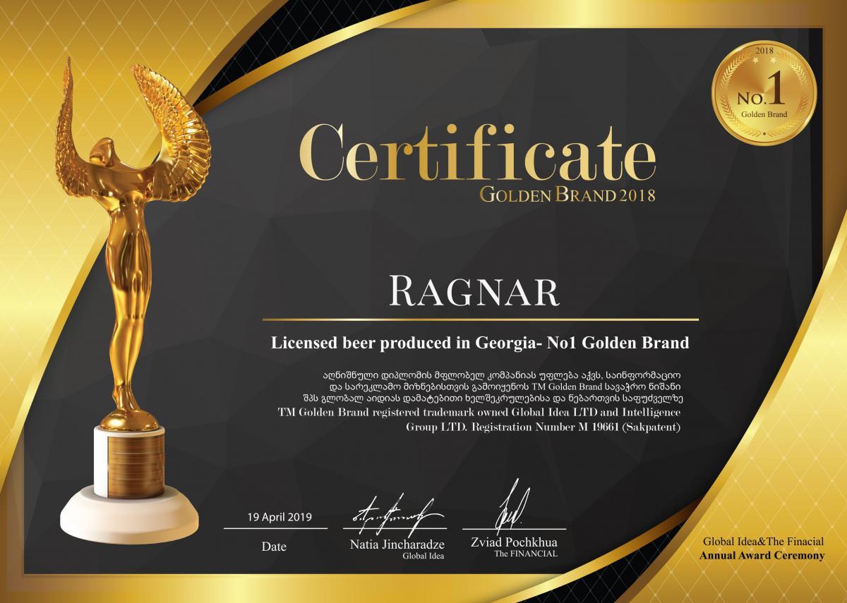 „ქართული ლუდის კომპანია“ ბიზნესის ოსკარად წოდებული Golden Brand -ის არაერთგზის გამარჯვებულია. „ჩერო“, „ზედაზენი“ და Ragnar-ი წლის ყველაზე დამოუკიდებელ ბიზნეს დაჯილდოვებაზე საუკეთესოებად აღიარეს. Golden Brand -ის დაჯოდლოების ცერემონიალზე, რომელიც 19 აპრილს სასტუმრო Hotels & Preference Hualing Tbilisi-ში, Global Idea-სა და The FINANCIAL-ის ორგანიზებით გაიმართა, წლის საუკეთესო ბრენდები გამოავლინეს.