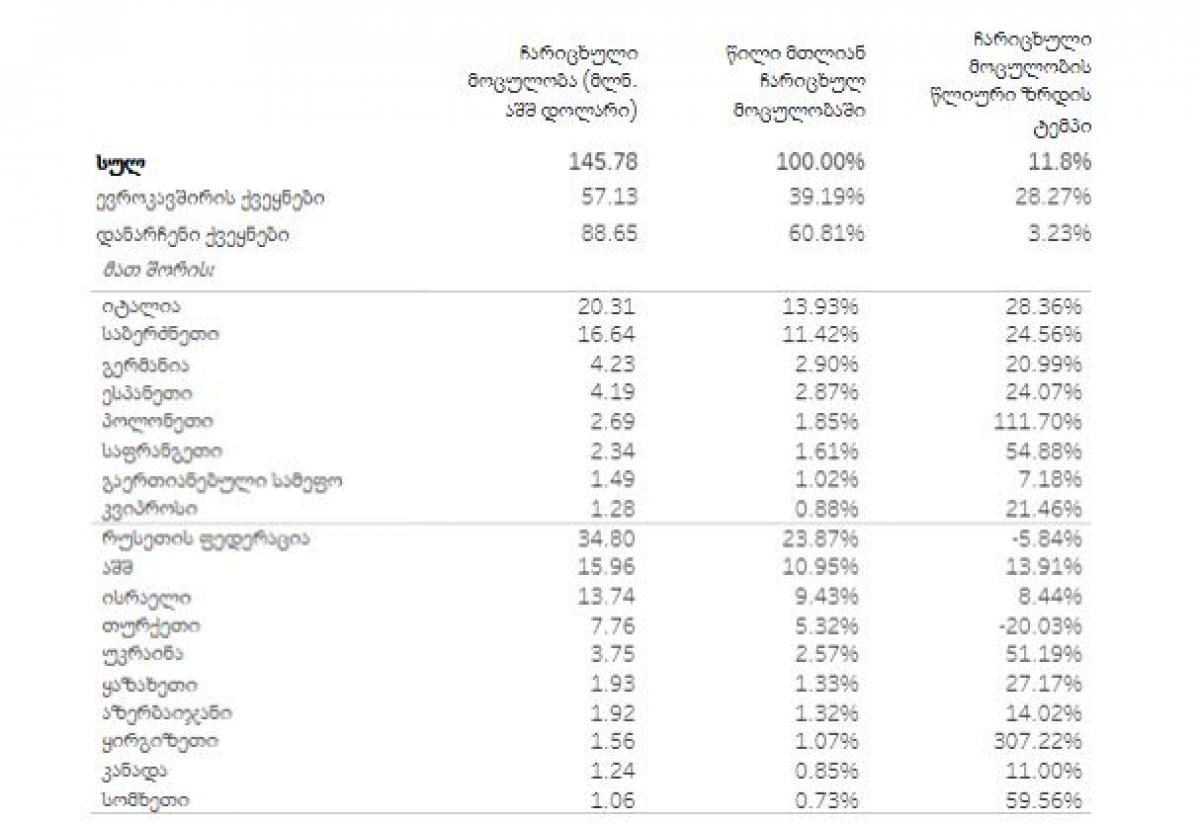 მაისში, ქვეყანაში შემოსული ფულადი გზავნილების მოცულობამ 145.8 მილიონი დოლარი შეადგინა