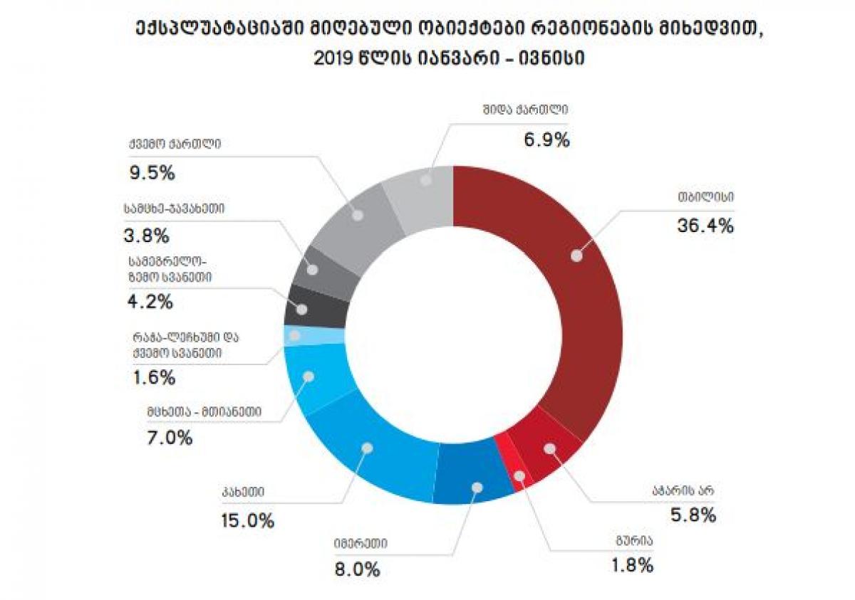 ოფიციალური დეკლარირებული მონაცემებით, საქართველოში 2019 წლის იანვარ-ივნისში გაცემულია 4991 ნებართვა (წინა წლის შესაბამის პერიოდთან შედარებით 1,0%-ით მეტი) 3520,9 ათასი კვ.მ ფართობის შენობა-ნაგებობების მშენებლობაზე (წინა წლის შესაბამის პერიოდთან შედარებით 17,5%-ით მეტი). სტატისტიკის ეროვნული სამსახურის ინფორმაციით, ნებართვების 71,6 პროცენტი მოდის ქვეყნის 3 რეგიონზე. კერძოდ, ჩასატარებელი სამშენებლო სამუშაოების 48,8 პროცენტი ქ. თბილისზე, 11,7 პროცენტი – ქვემო ქართლის რეგიონზე და 11,1 პროცენტი – აჭარის ა.რ.-ზე ნაწილდება: „აღსანიშნავია, რომ 2019 წლის იანვარ-ივნისში ნებართვები გაიცა მრავალფუნქციური საცხოვრებელი კომპლექსების, სასტუმროების, სავაჭრო ობიექტების, სამრეწველო საწარმოების, სასოფლო-სამეურნეო დანიშნულების ობიექტებისა და სხვა შენობა - ნაგებობების მშენებლობაზე. გაცემულ ნებართვებში შედარებით დიდი წილით წარმოდგენილია მრავალფუნქციური საცხოვრებელი კომპლექსები“, - აცხადებენ საქსტატში. დამთავრებული მშენებლობების ნახევარზე მეტი მოდის ქვეყნის 3 რეგიონზე. კერძოდ, 36,4 პროცენტი ქ. თბილისზე, 15,0 პროცენტი – კახეთის რეგიონზე, ხოლო 9,5 პროცენტი - ქვემო ქართლის რეგიონზე ნაწილდება: სულ, 2019 წლის იანვარ-ივნისში ექსპლუატაციაში მიღებულ იქნა 1370,6 ათასი კვ.მ ფართობის (წინა წელთან შედარებით 47,6 პროცენტით მეტი) 1236 ობიექტი (წინა წელთან შედარებით 6,3 პროცენტით მეტი).
